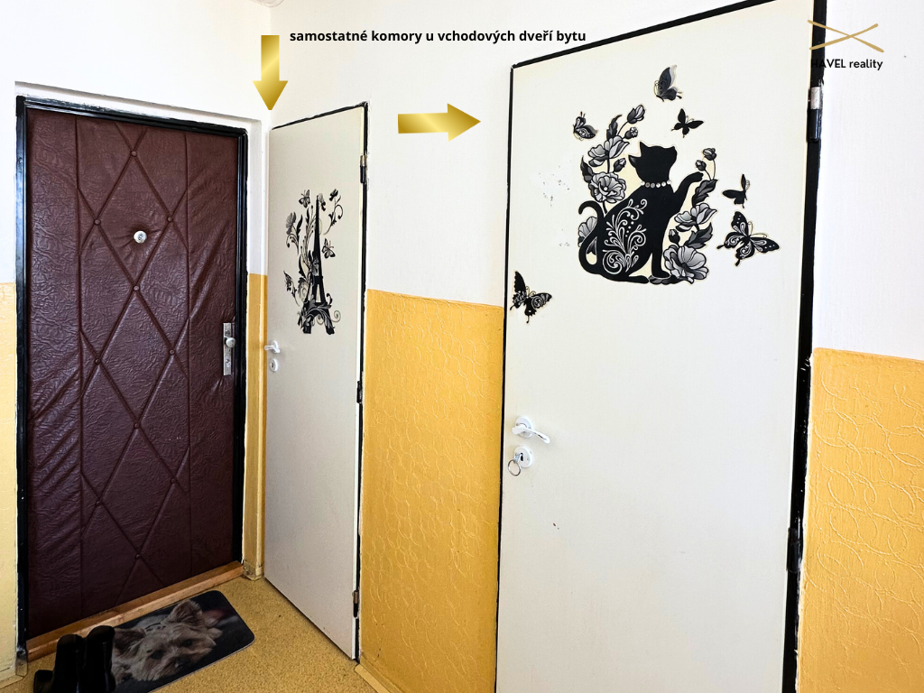 Na stejném podlaží bytové jednotky jsou dále k dispozici dvě úložné komory s možností stavební úpravy či další využití úložné kapacity. K bytu náleží prostorná sklepní kóje o velikosti 3 m².