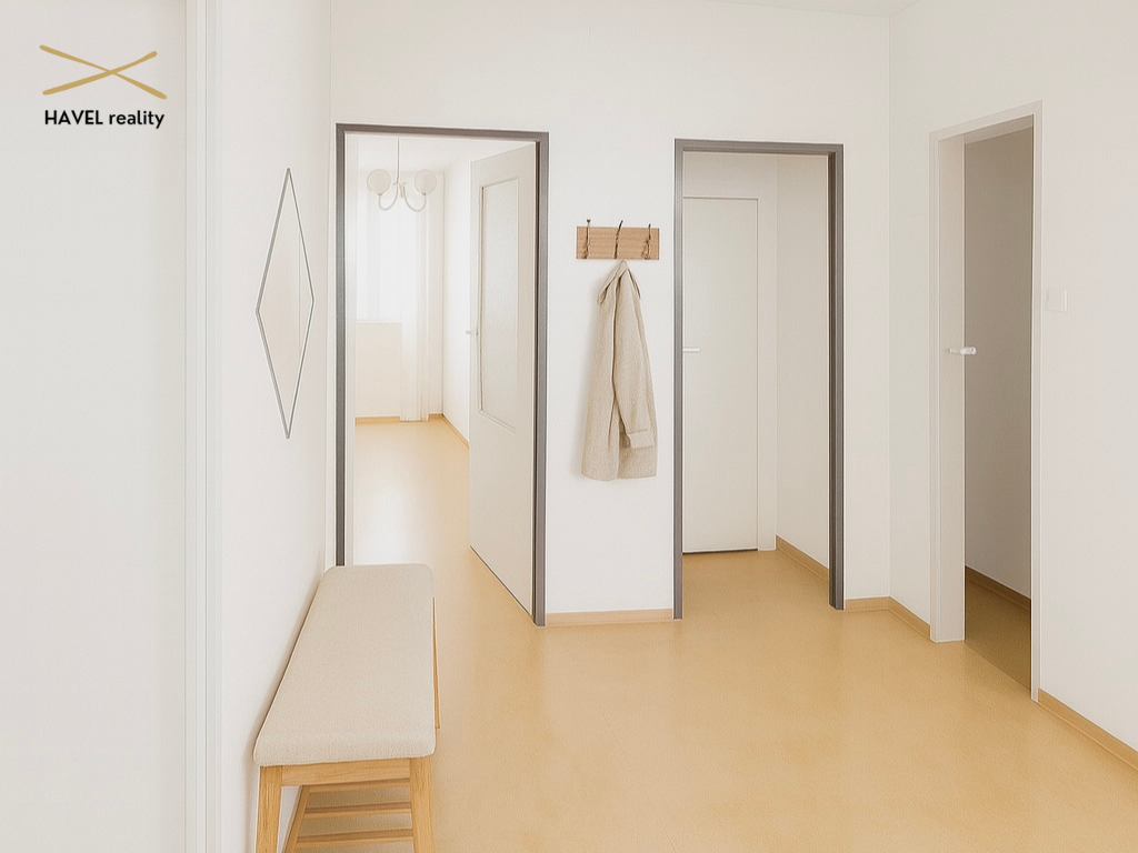 Při vstupu do bytu se nacházíte v prostorné předsíni, ze které můžete jít rovnou do všech existujících pokojů a prostorů v bytě. A to do: