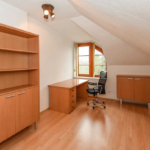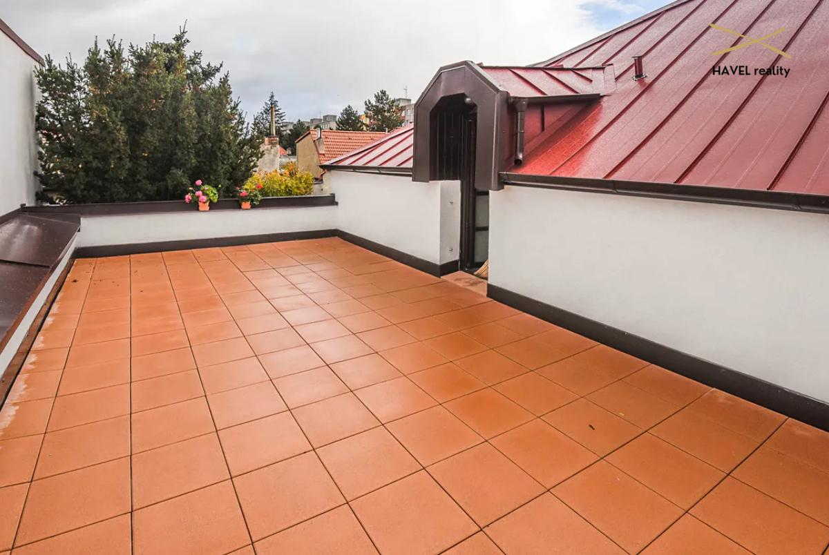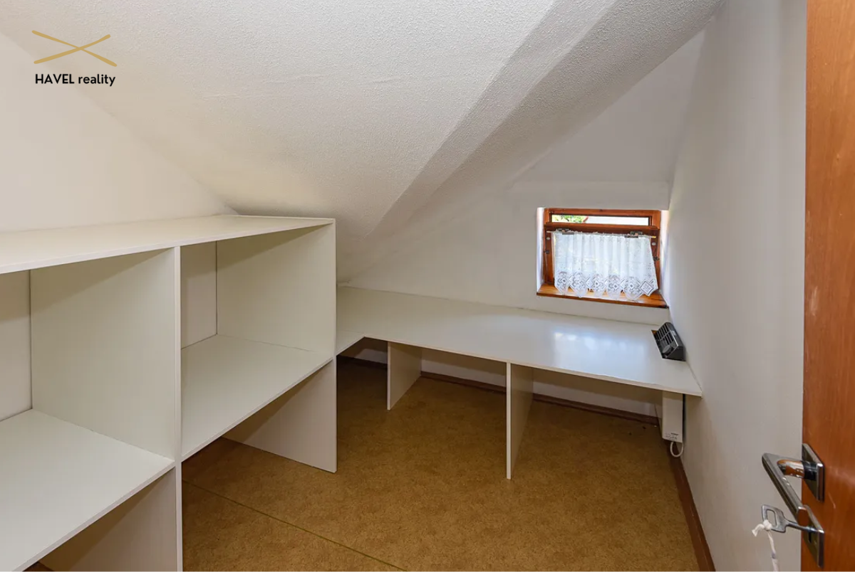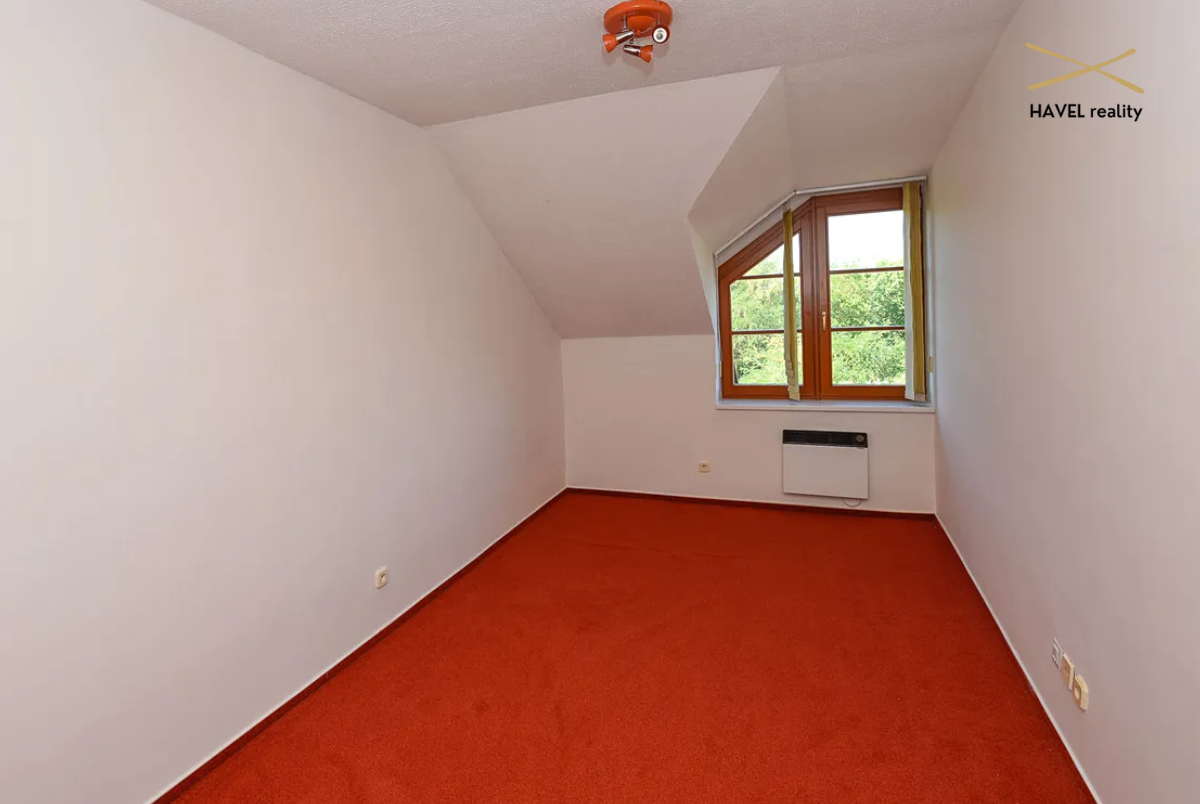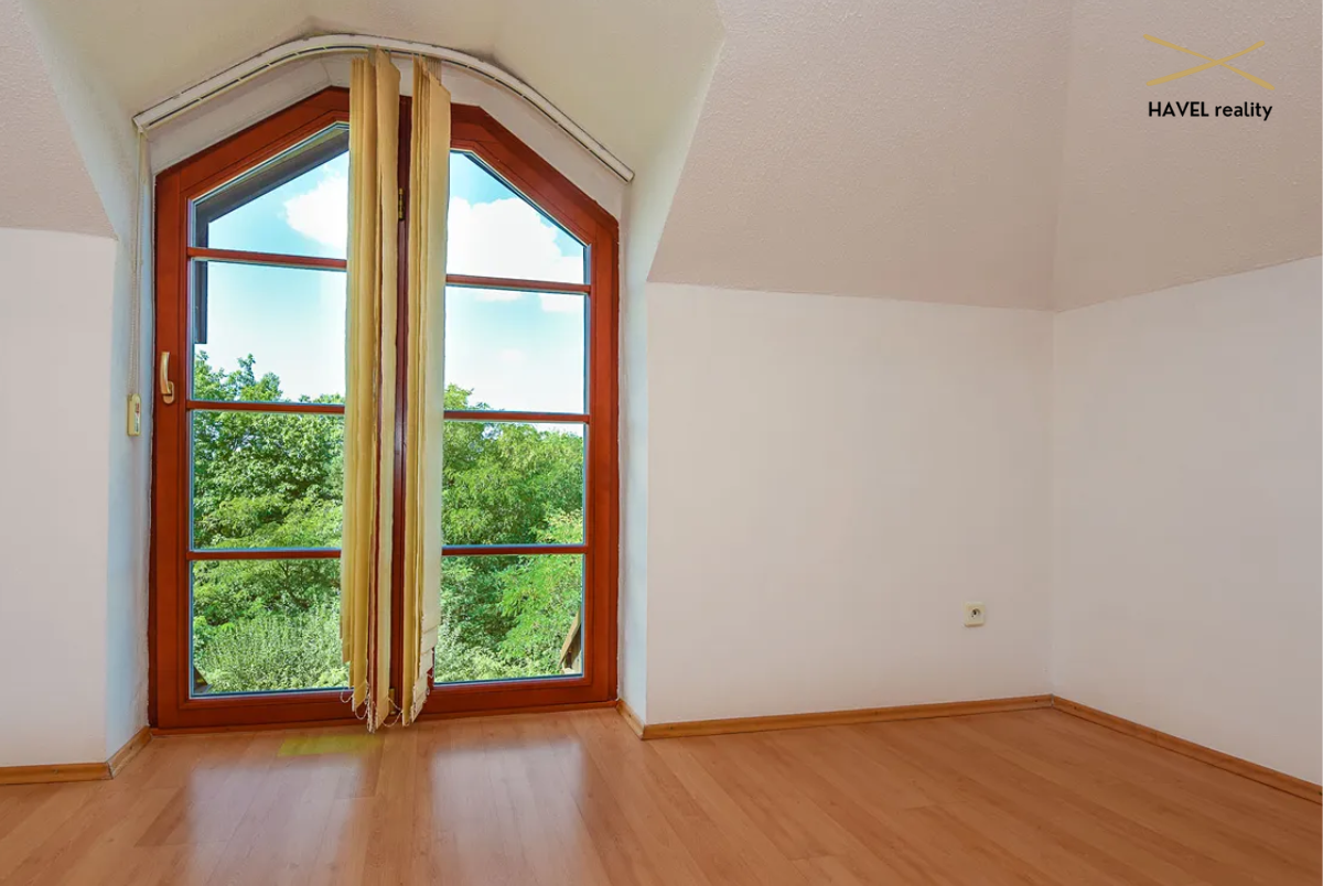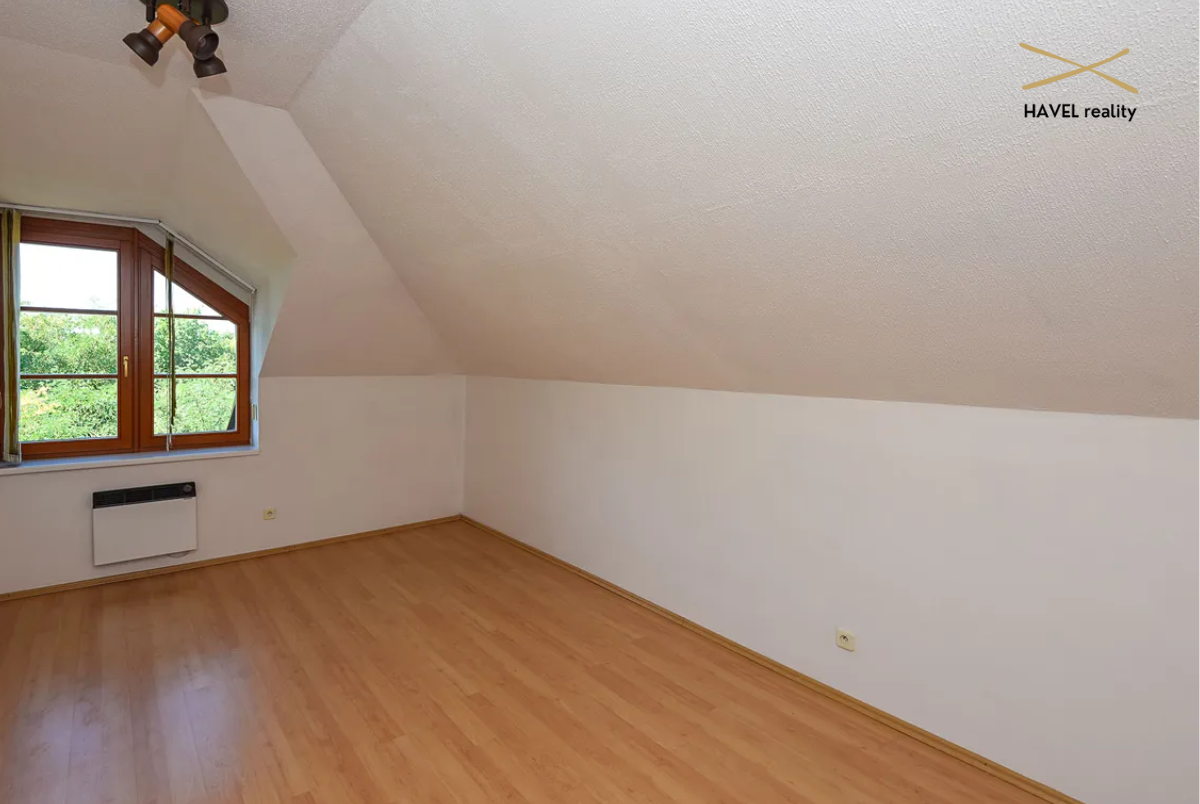Čtyři pokoje – tři orientované do zeleně Modřanské rokle (19 m², 15 m² a 16 m²) a jeden s výhledem do zahrady (15 m²). Dva pokoje mají prostorné vestavěné skříně a jeden je zařízen jako plně vybavená dvoupracovní home office. V patře je druhá koupelna s vanou, bidetem a toaletou a také komora (6 m²). Velká terasa orientovaná na východ i západ poskytuje nádherné výhledy a naprosté soukromí.